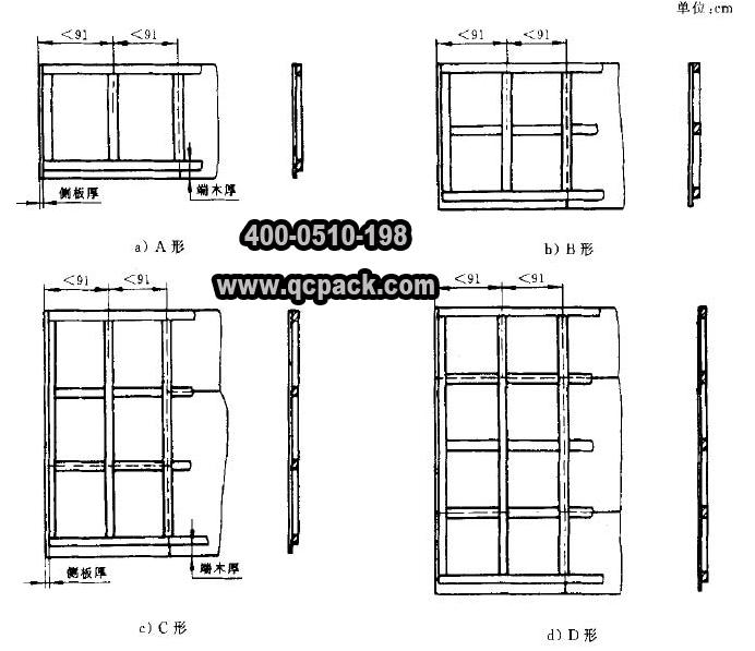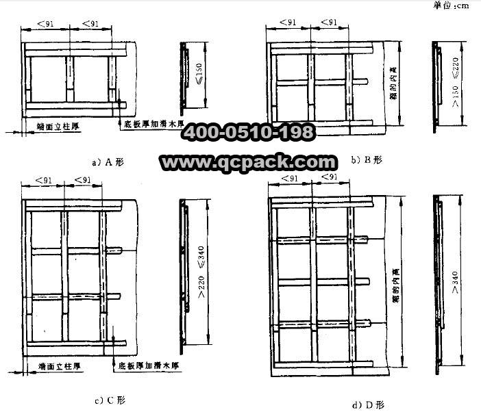 框架木箱的底座也是由滑木、輔助滑木、端木、枕木和底板組成的,其結構與滑木箱基本相同。底座在裝上內(nèi)裝物而未裝側面和端面時,不能單靠底座進行起吊作業(yè),特殊情況需要起吊時,需將底座加固,參照《GB/T 10819-2005 木制底盤》進行。